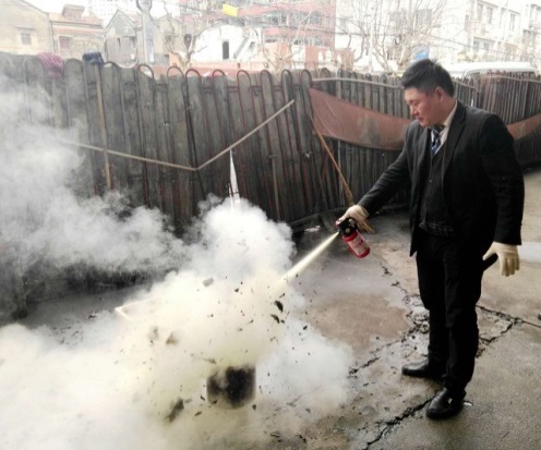 同时,分公司营运部组织全体管理人员开展年度消防演习,讲解灭火器的操作要领。