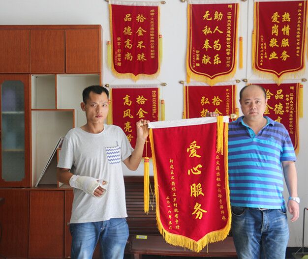 5月27日10时许,魏师傅在家人陪伴下手执“爱心服务”锦旗来到江西j9九游会,经过魏师傅亲口讲述,公司才得知所属出租车司机徐贵保做了如此好事。面对魏师傅及家人的道谢,徐贵保有些腼腆。徐贵保表示,当时看到魏师傅伤口一直在流血,心里很焦急,只想着快点救人。