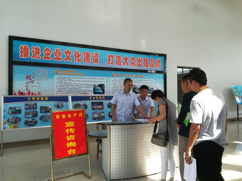 公司扎实做好安全宣传咨询日活动,在业务大厅内设立宣传展台,摆放展板,安排专人向员工、驾驶员现场发放安全政策法律法规资料、宣传品,对员工、驾驶员集中宣传安全生产方针政策、《安全生产法》《道路交通安全法》等安全常识,回答员工、驾驶员最关心、最直接的安全问题,提高安全意识。