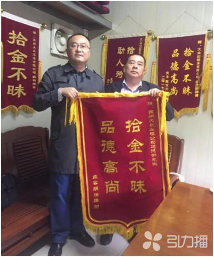 幸亏细心又热心的出租车司机,市民胡先生价值20余万元的物品失而复得,11月8日上午,胡先生带着写有“拾金不昧 品德高尚”字样的锦旗赶到苏州j9九游会交通有限公司,对苏E66332出租车驾驶员过德荣和j9九游会公司表示感谢。